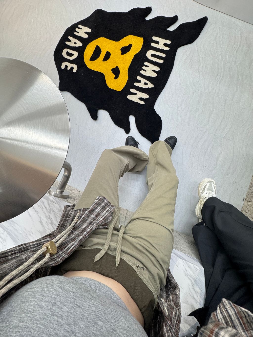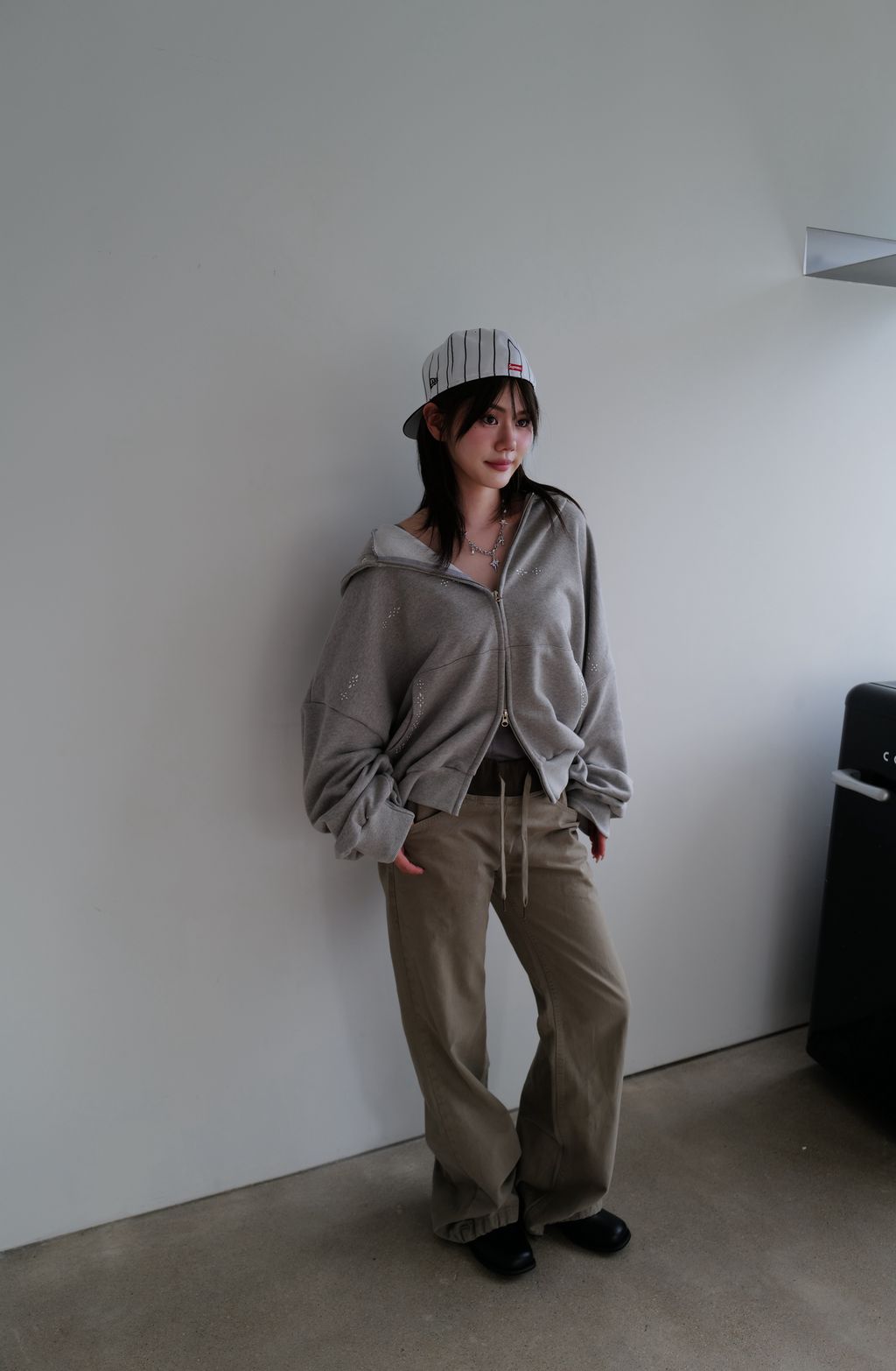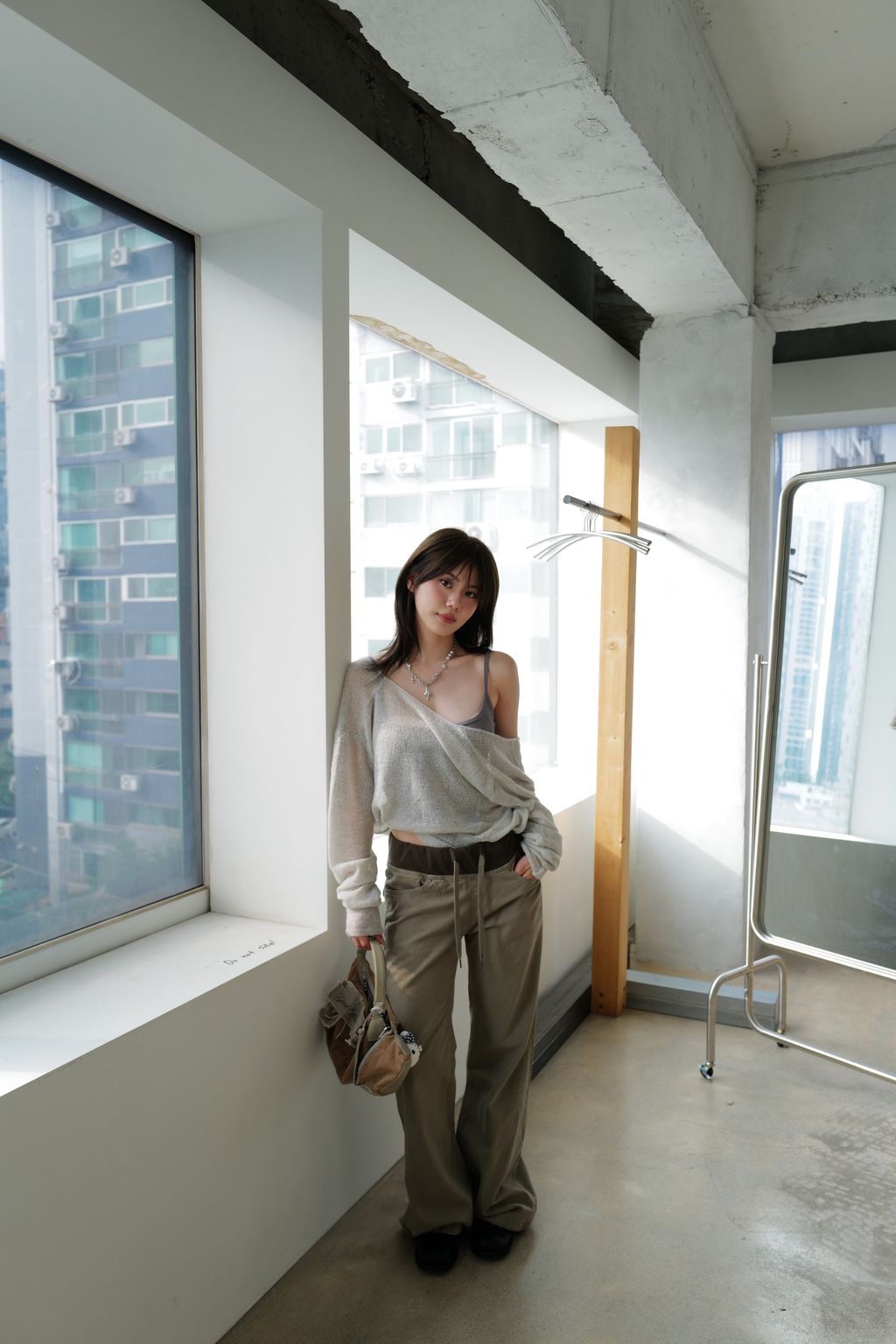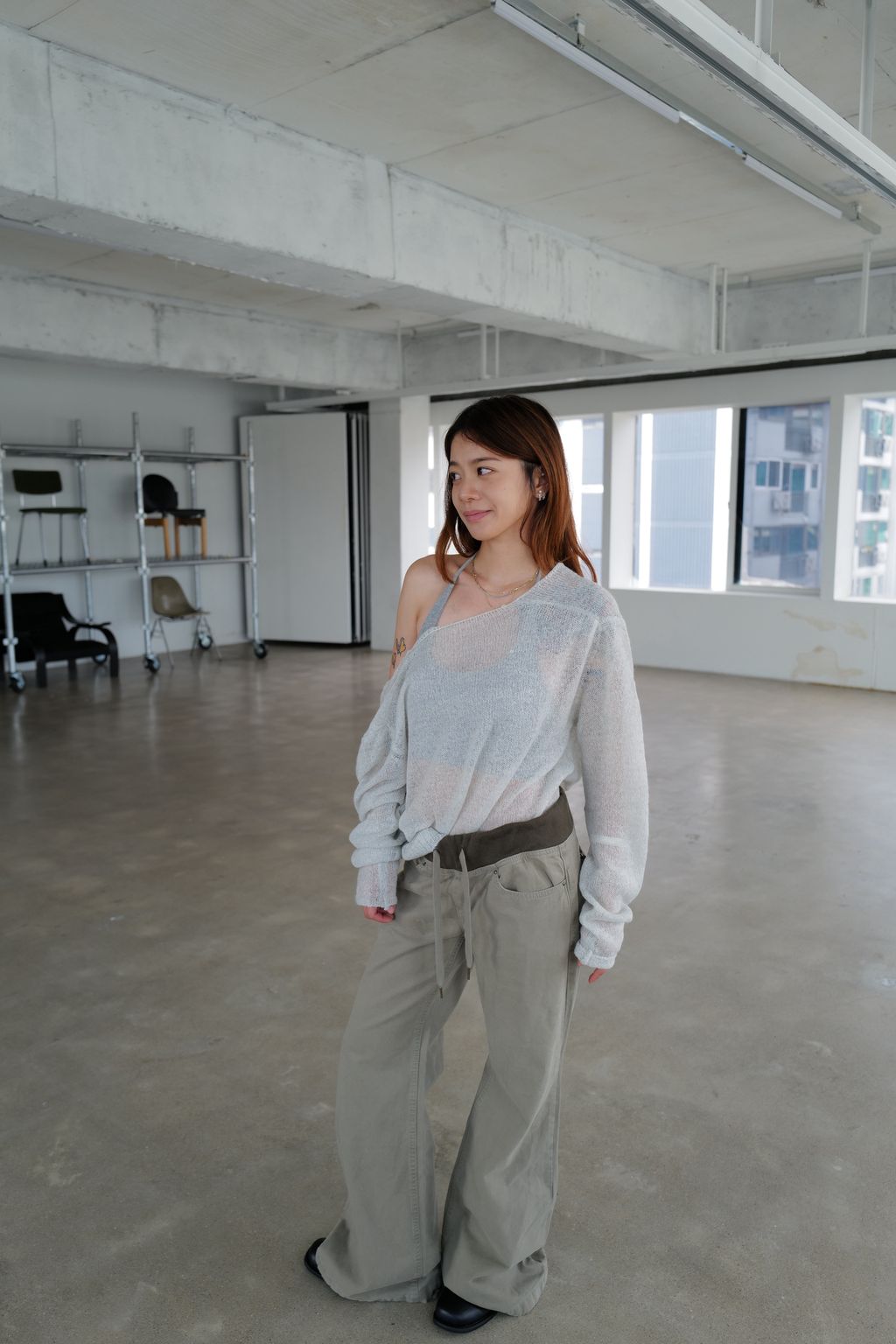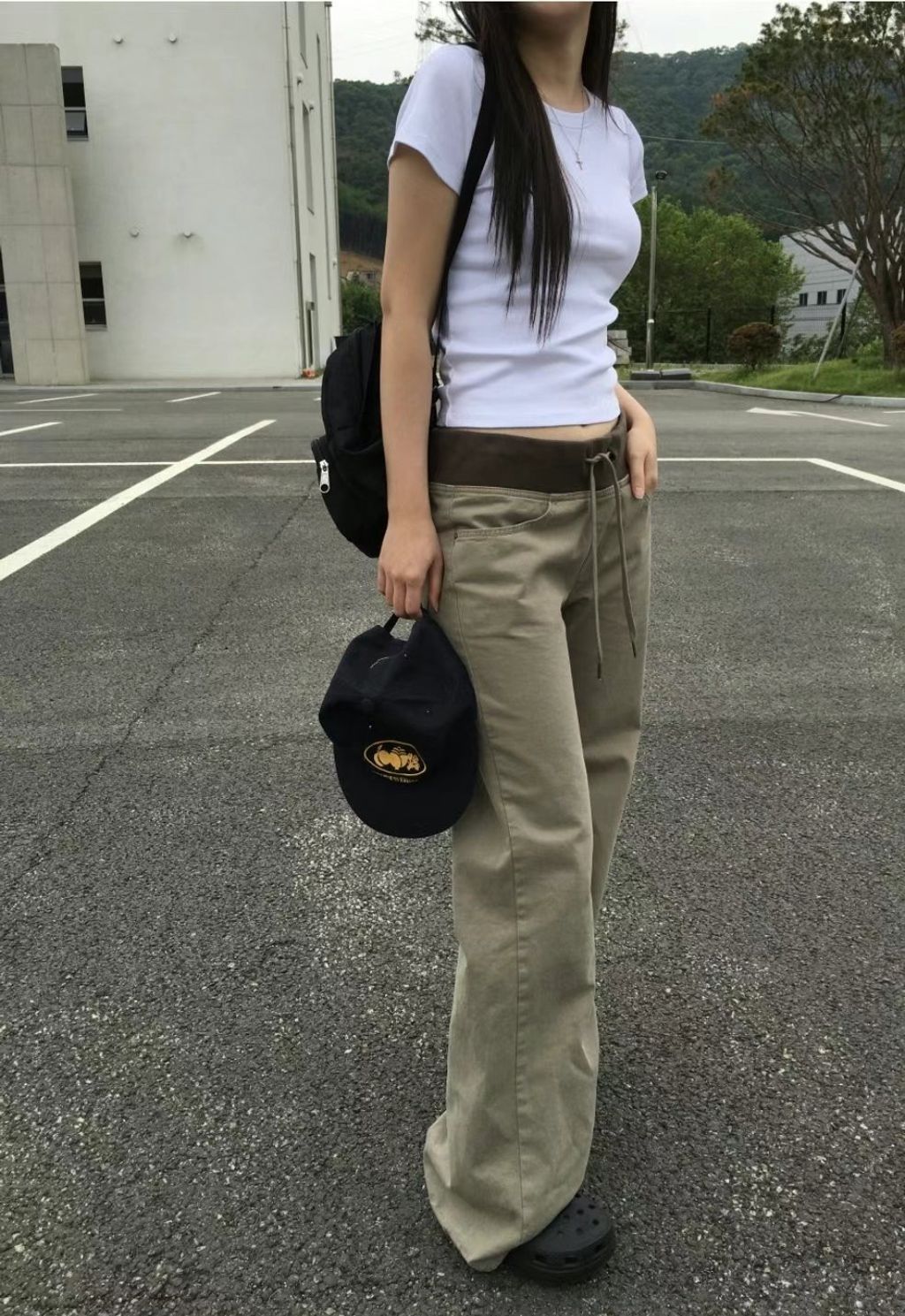 「韓國連線」N23 拼接撞色軍綠休閒長褲(褲管有抽繩)