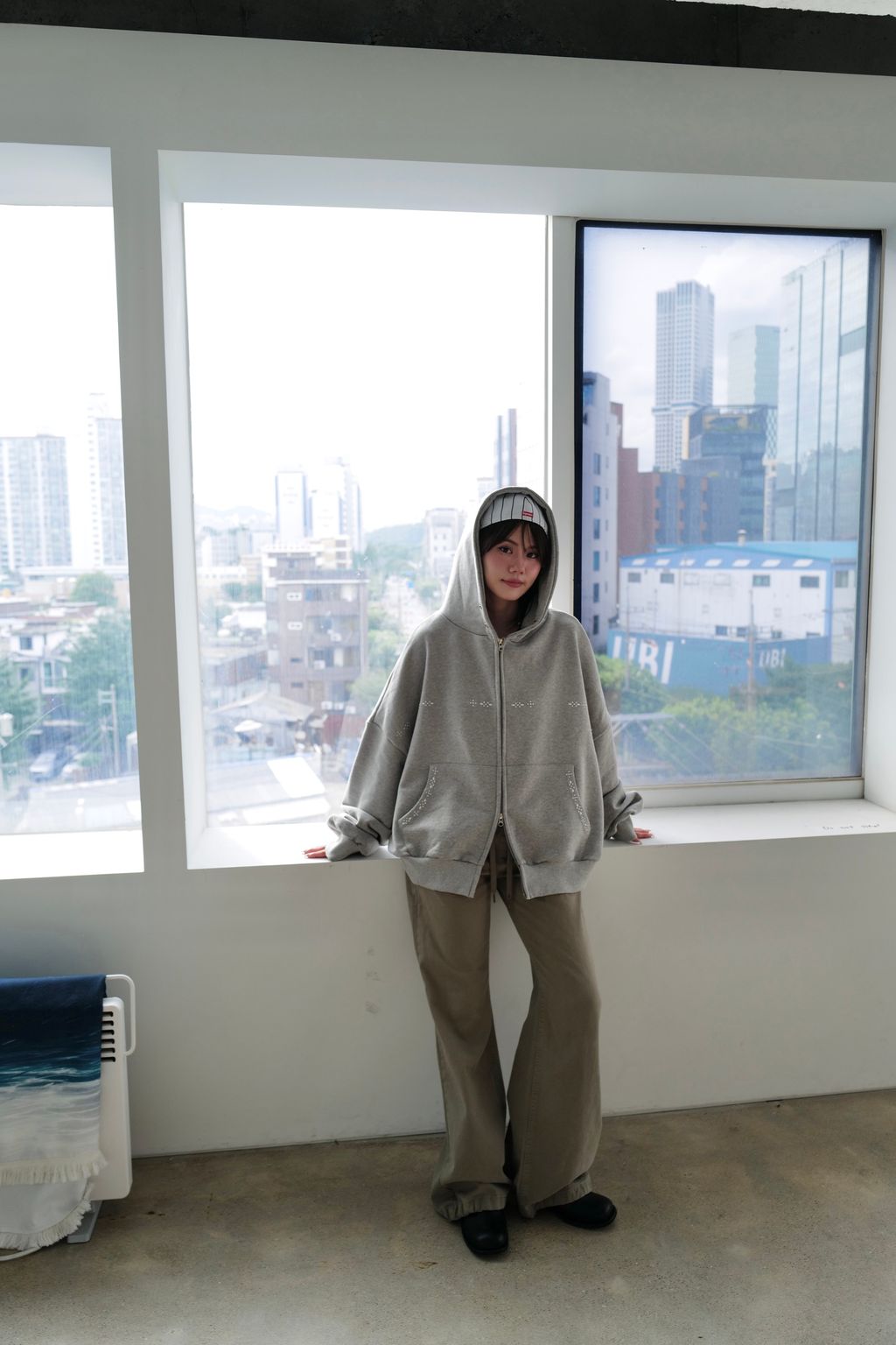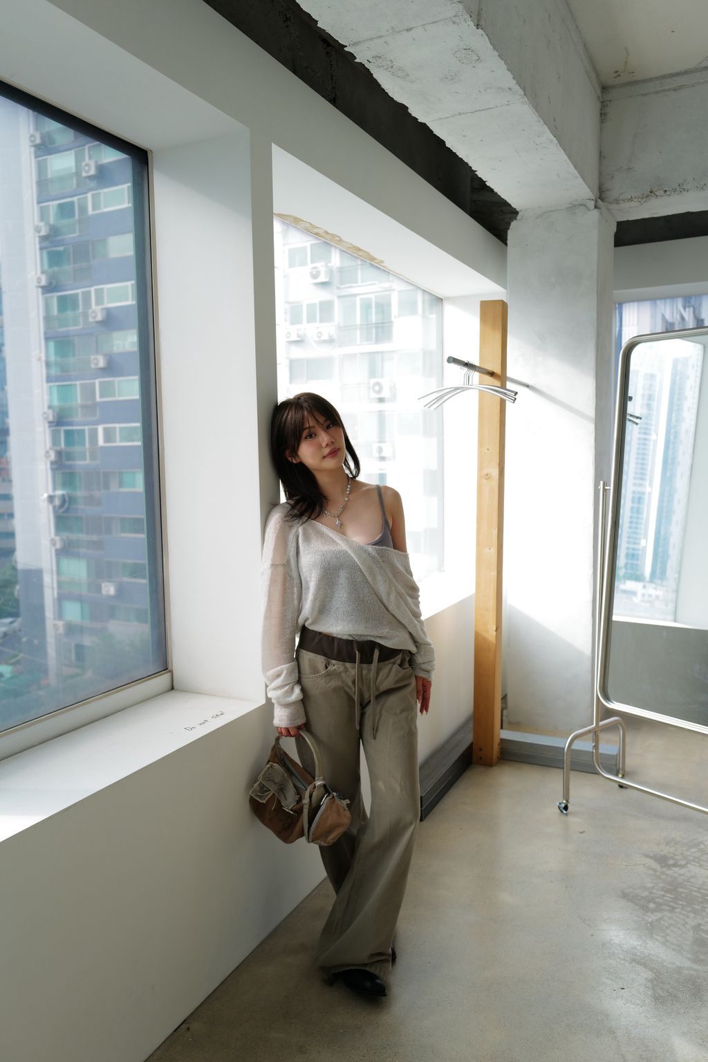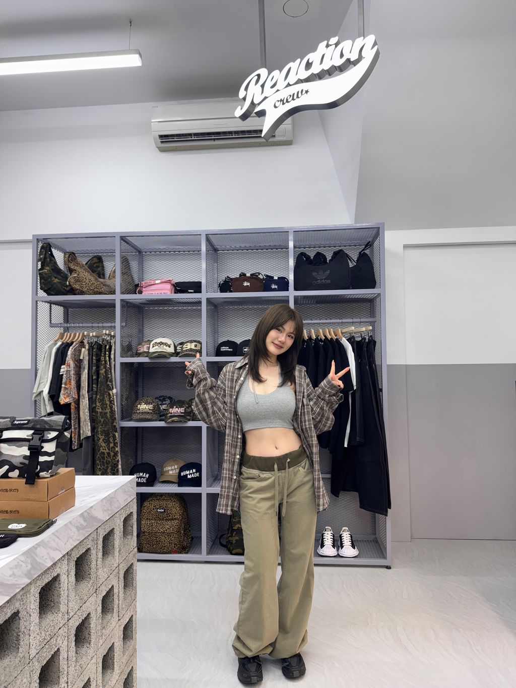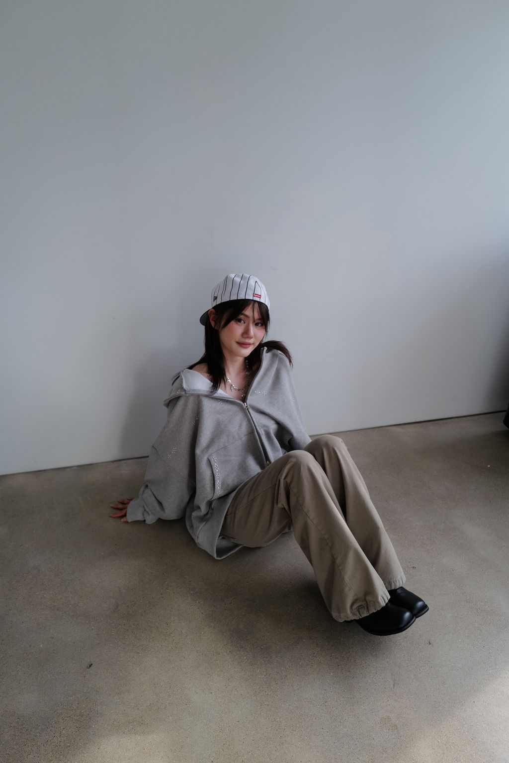 「韓國連線」N23 拼接撞色軍綠休閒長褲(褲管有抽繩)