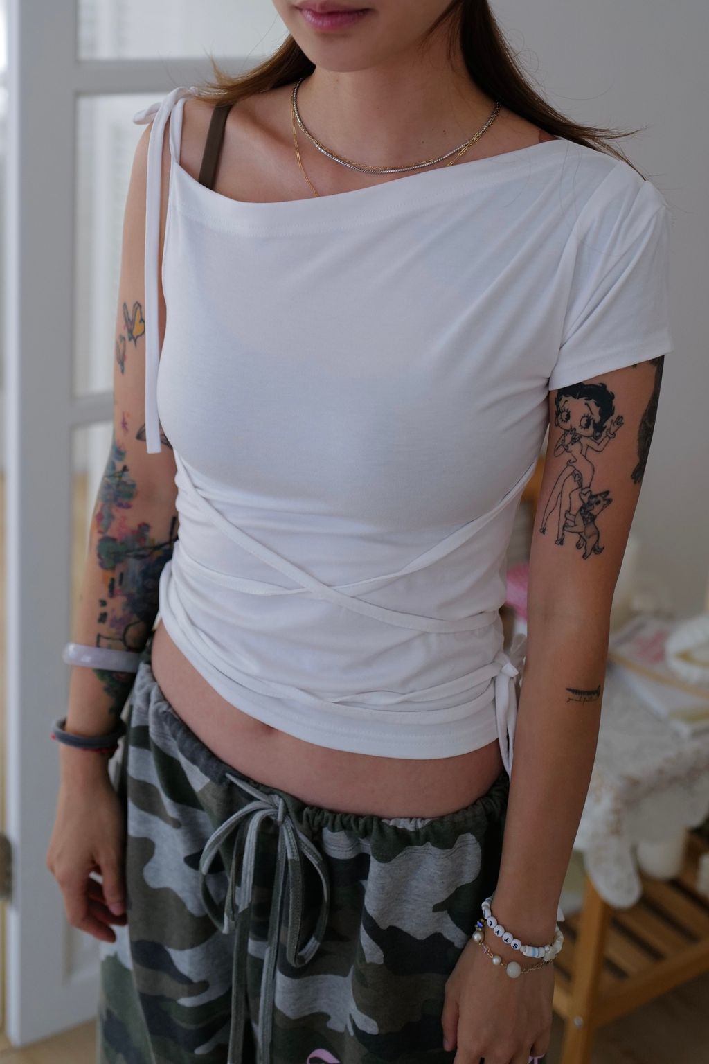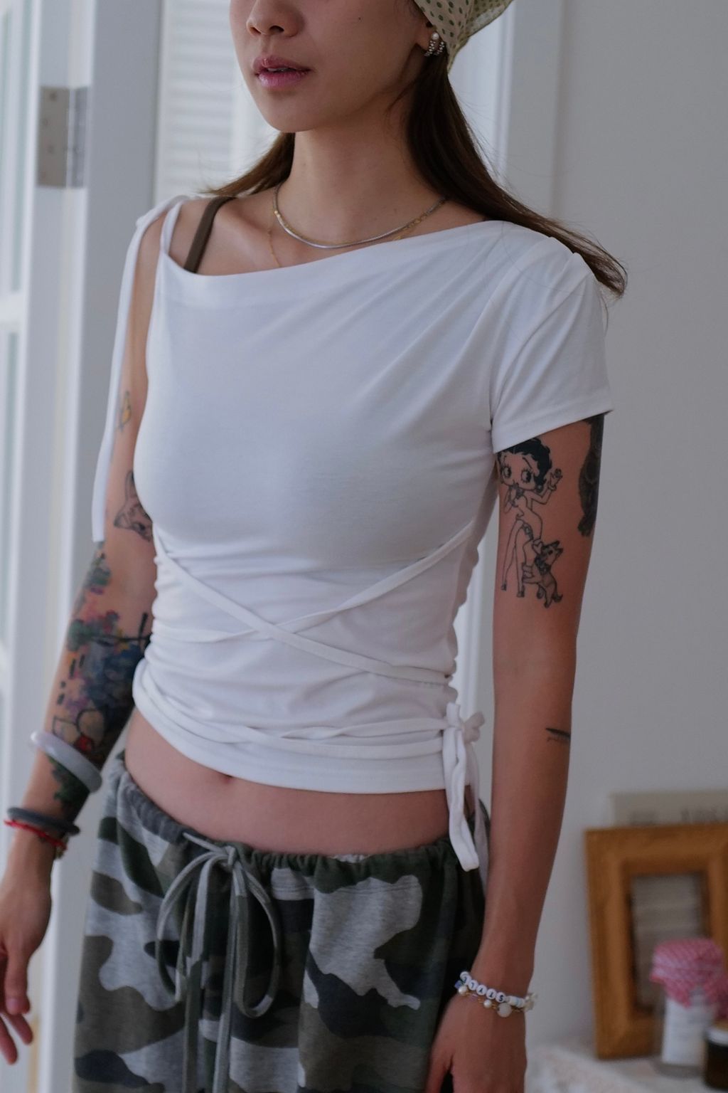 「韓國連線」N58 綁帶斜肩Top (超顯胸)