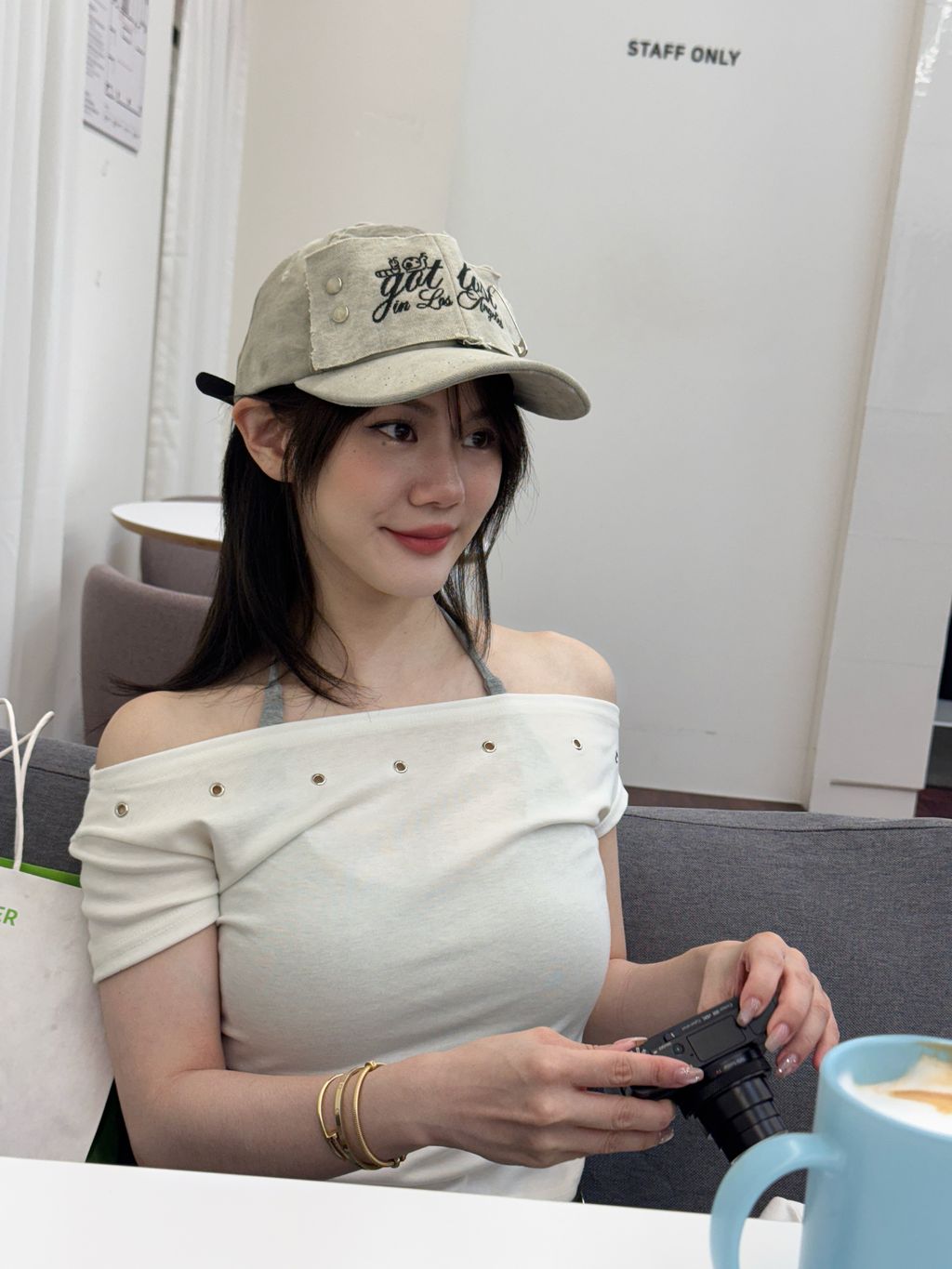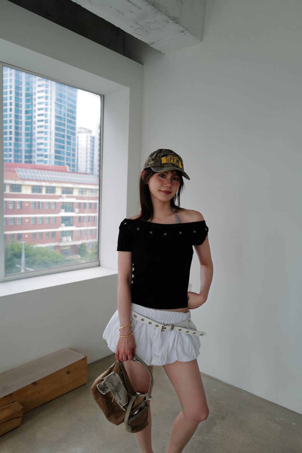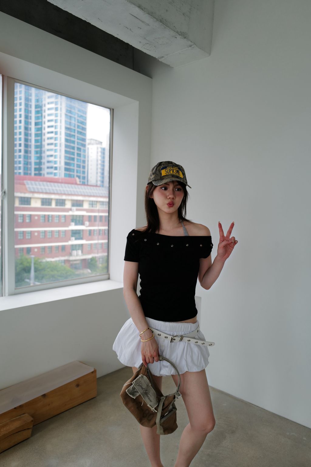 「韓國連線」N24 斜肩洞洞top (黑/灰/白)