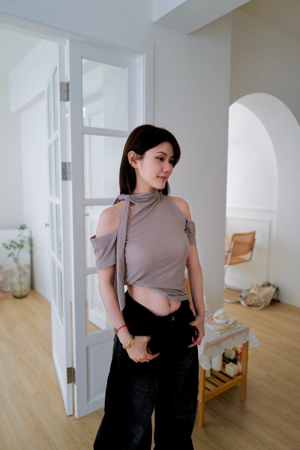 「韓國連線」N44 綁脖露肩設計上衣(四色)