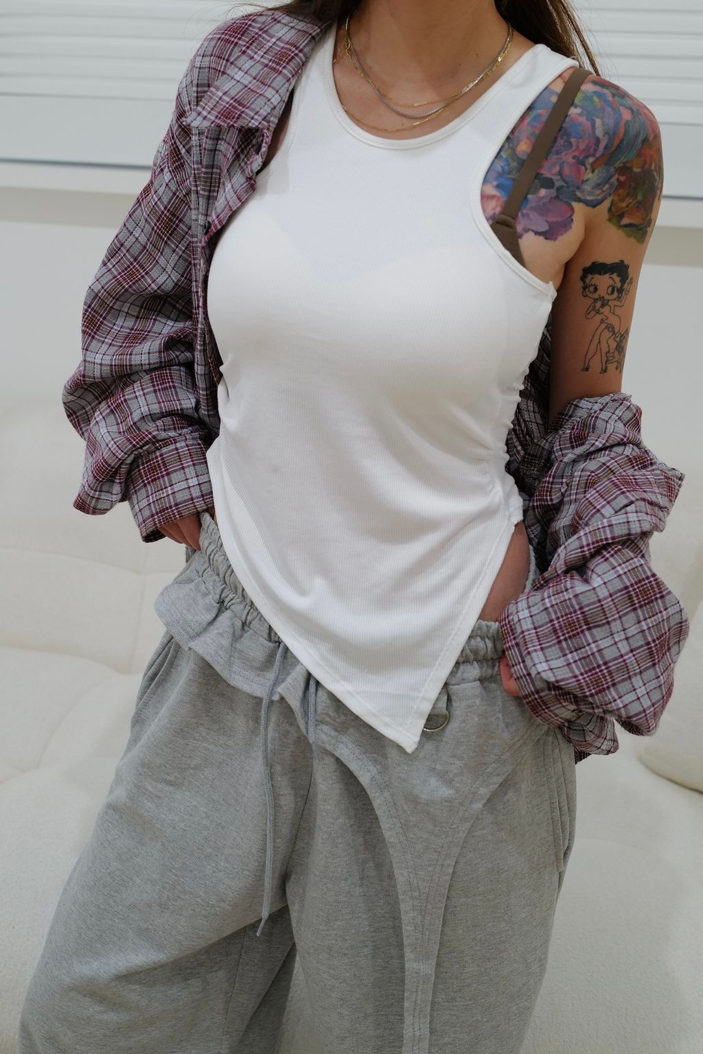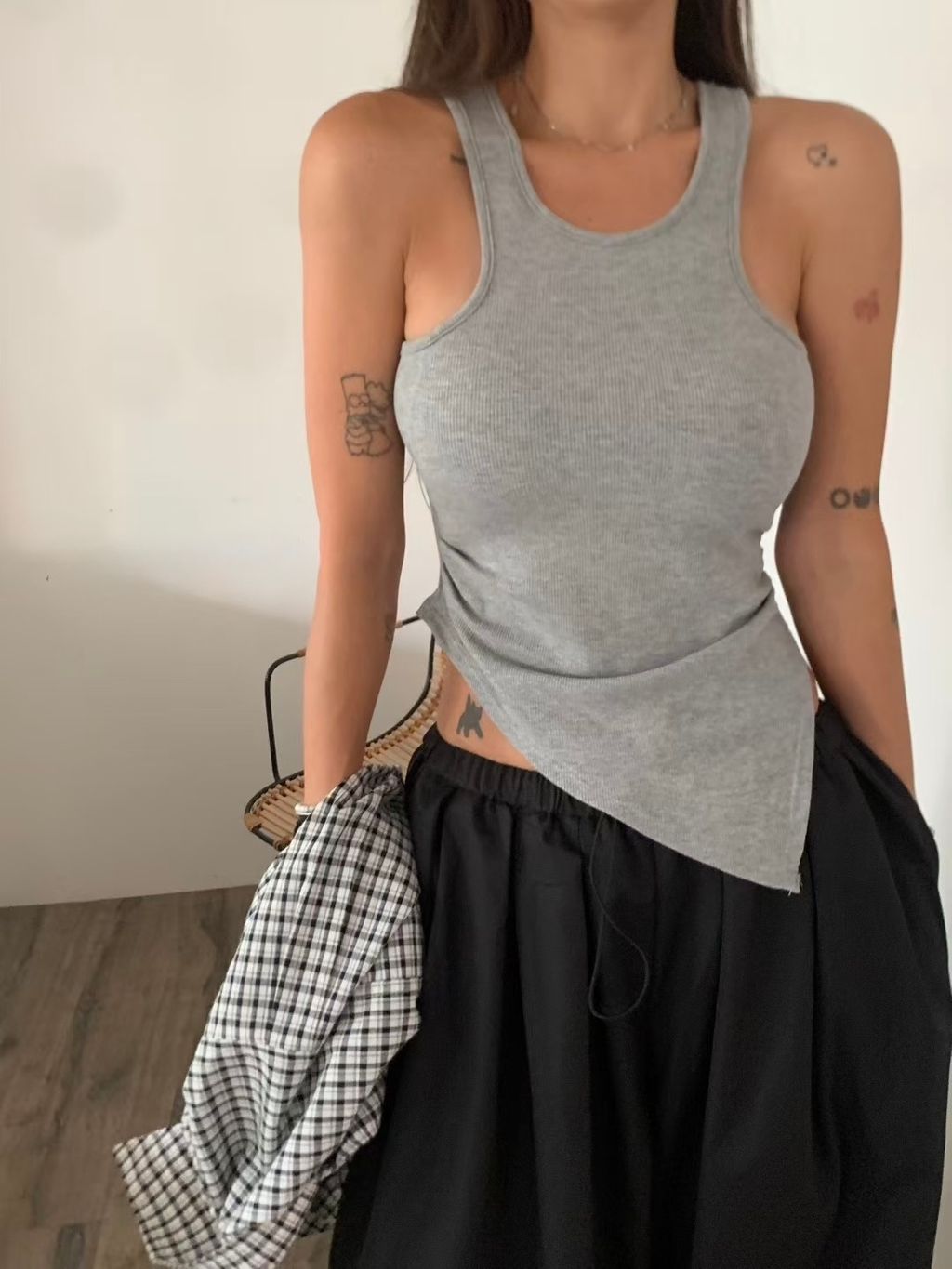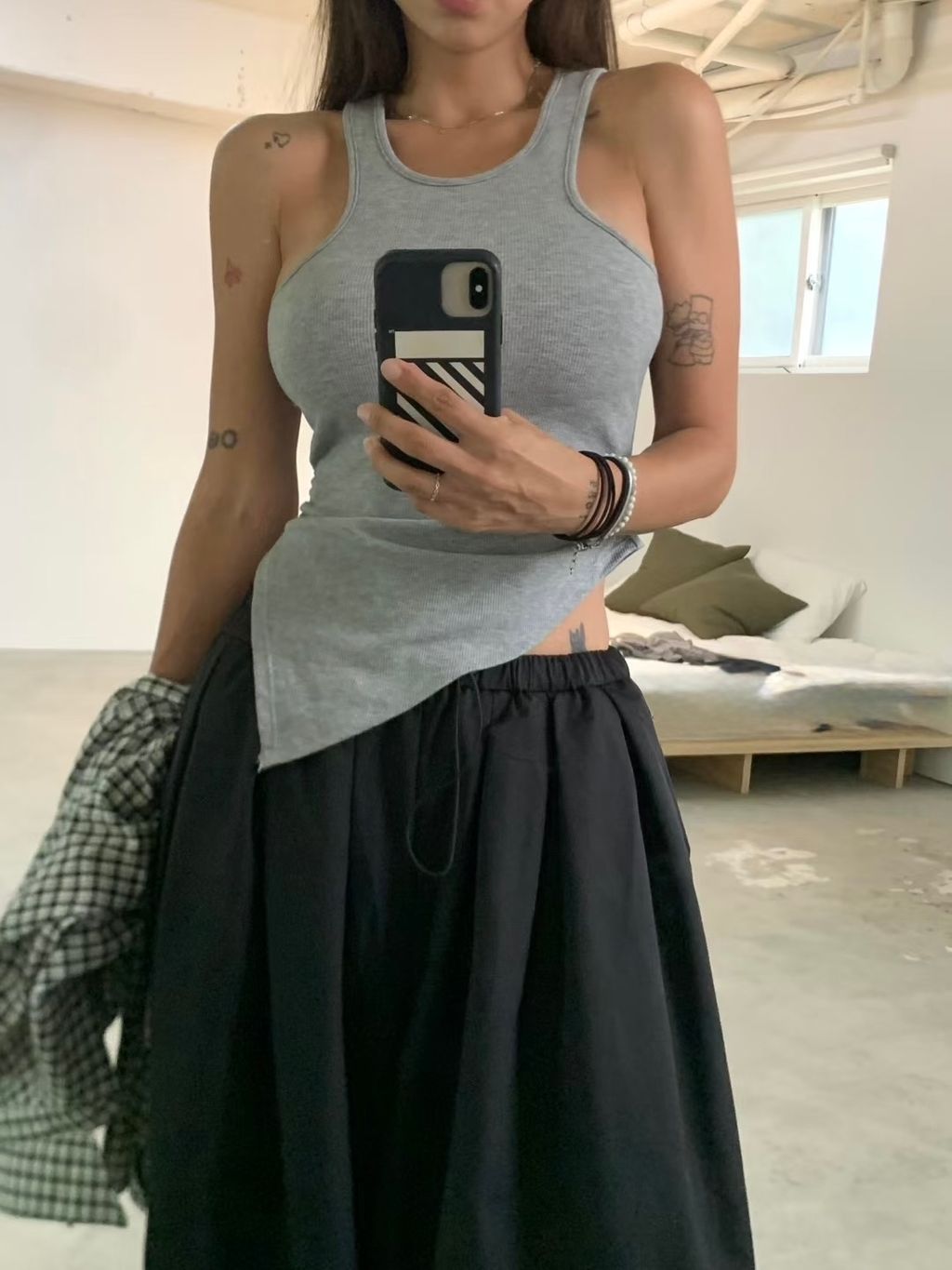 「韓國連線」N33 舒適超級透氣 挖胸斜襬設計背心(附胸墊)