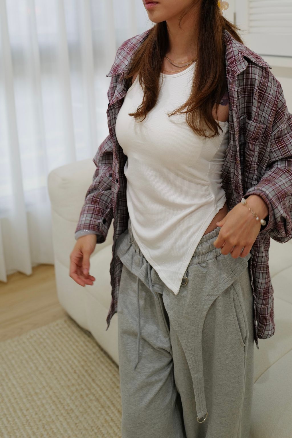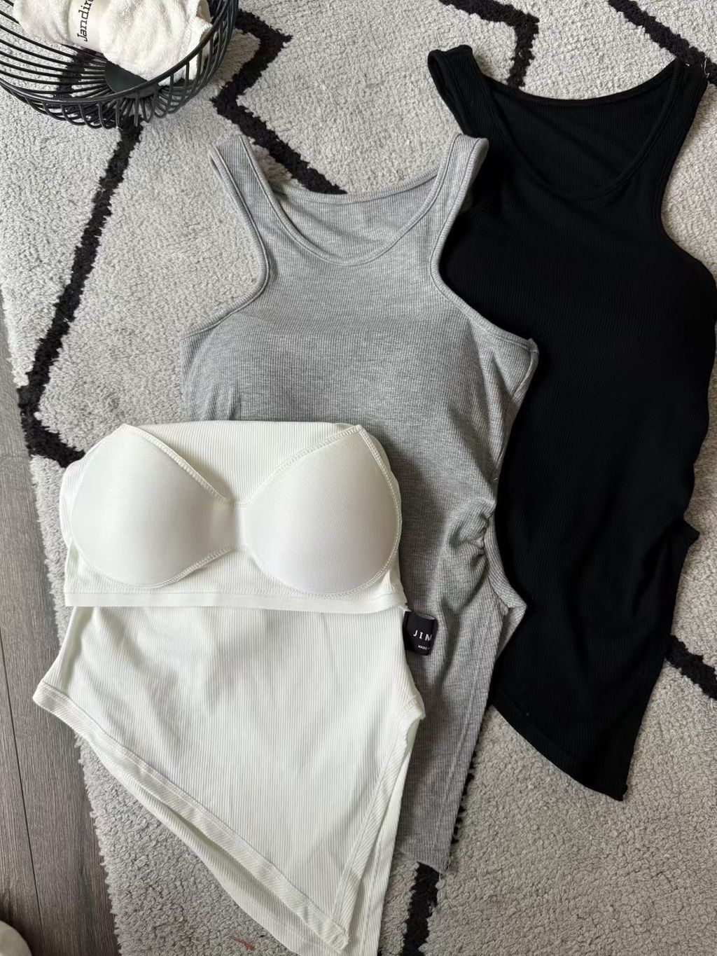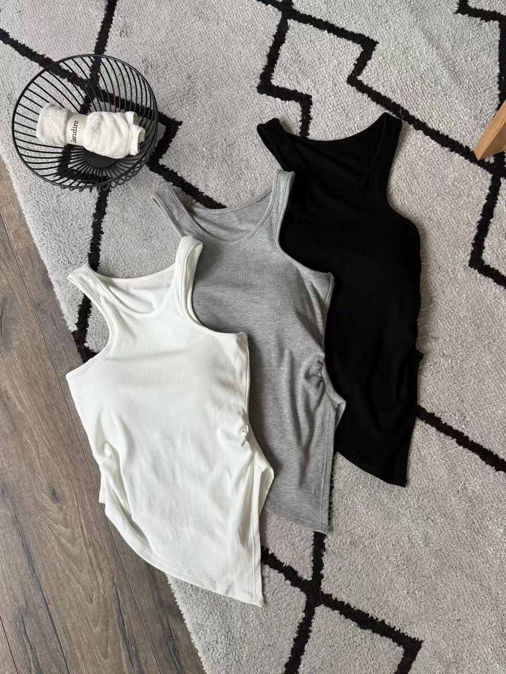 「韓國連線」N33 舒適超級透氣 挖胸斜襬設計背心(附胸墊)