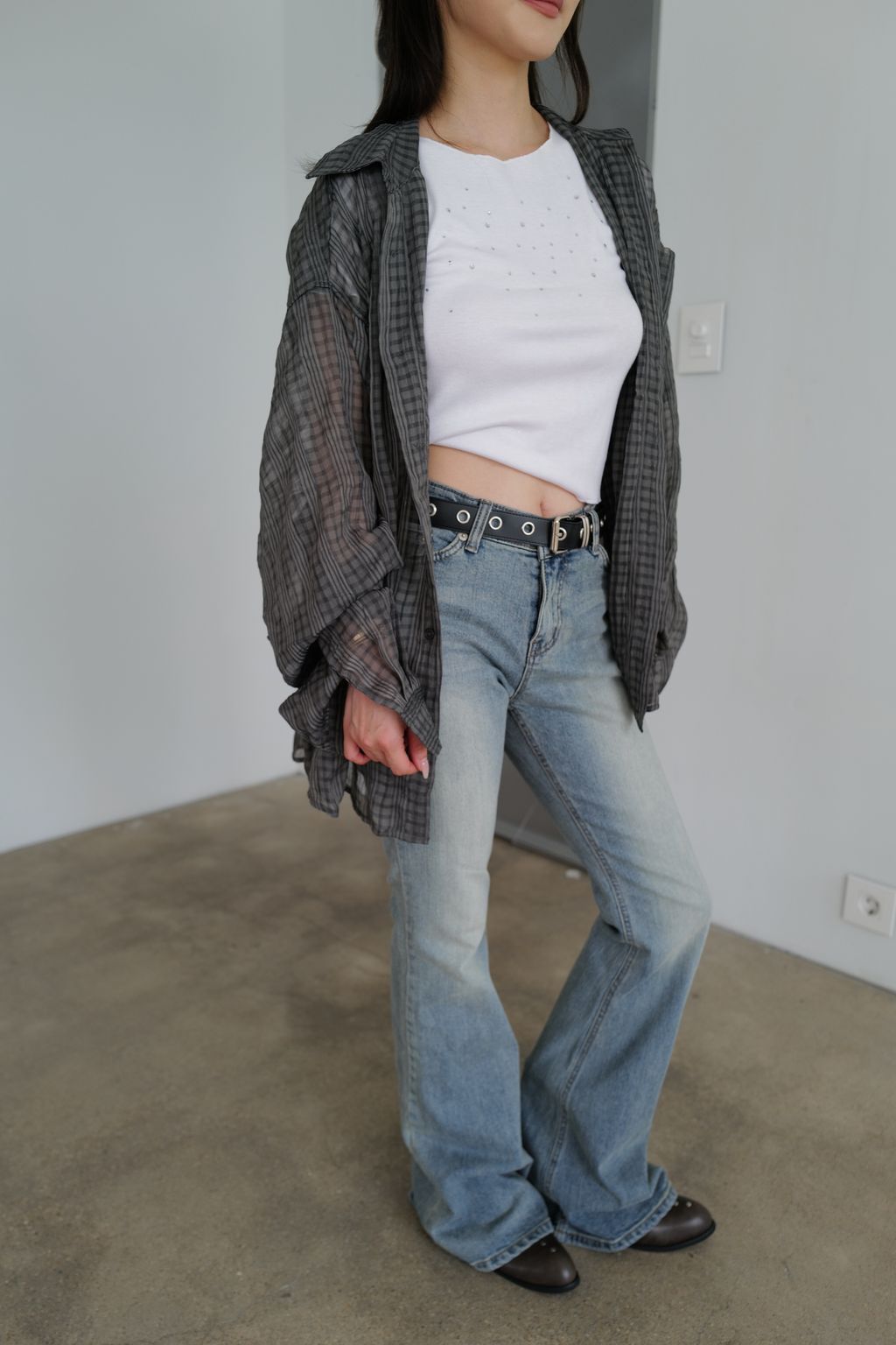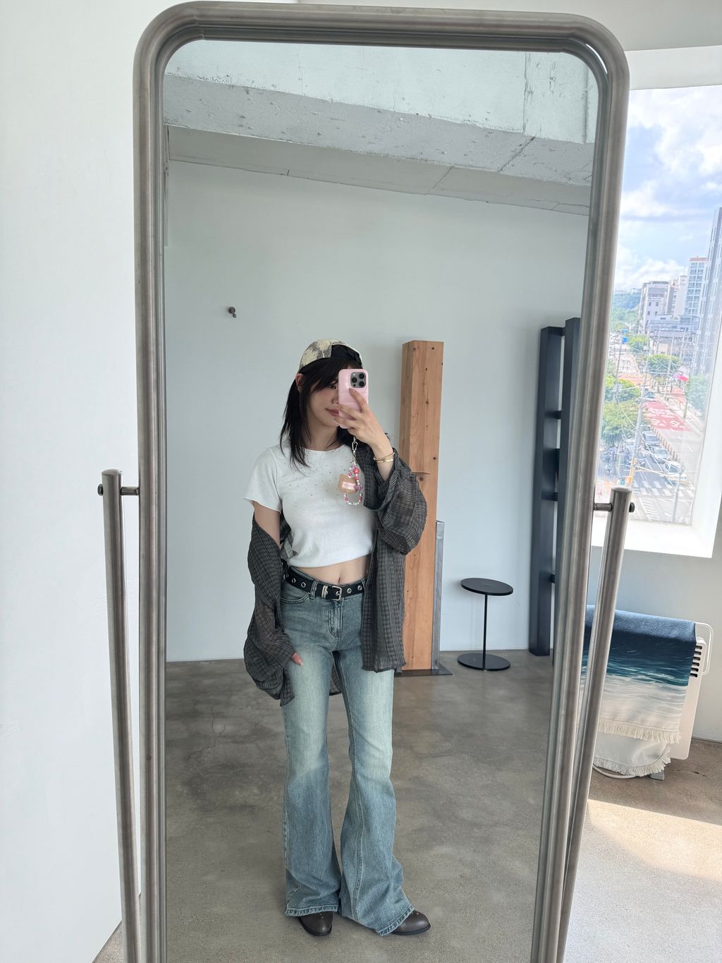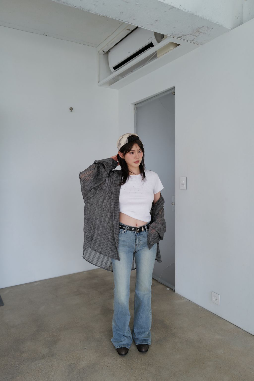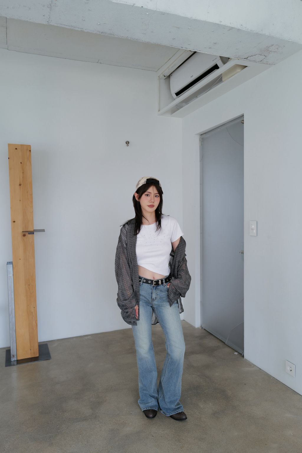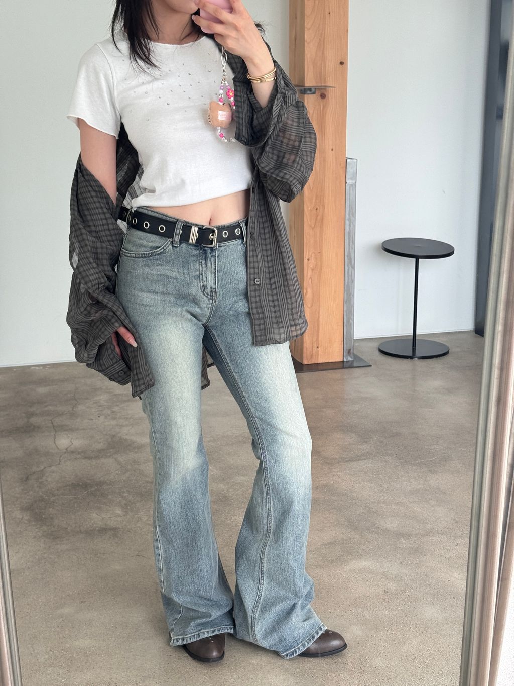「韓國連線」N22 淺刷色喇叭牛仔褲