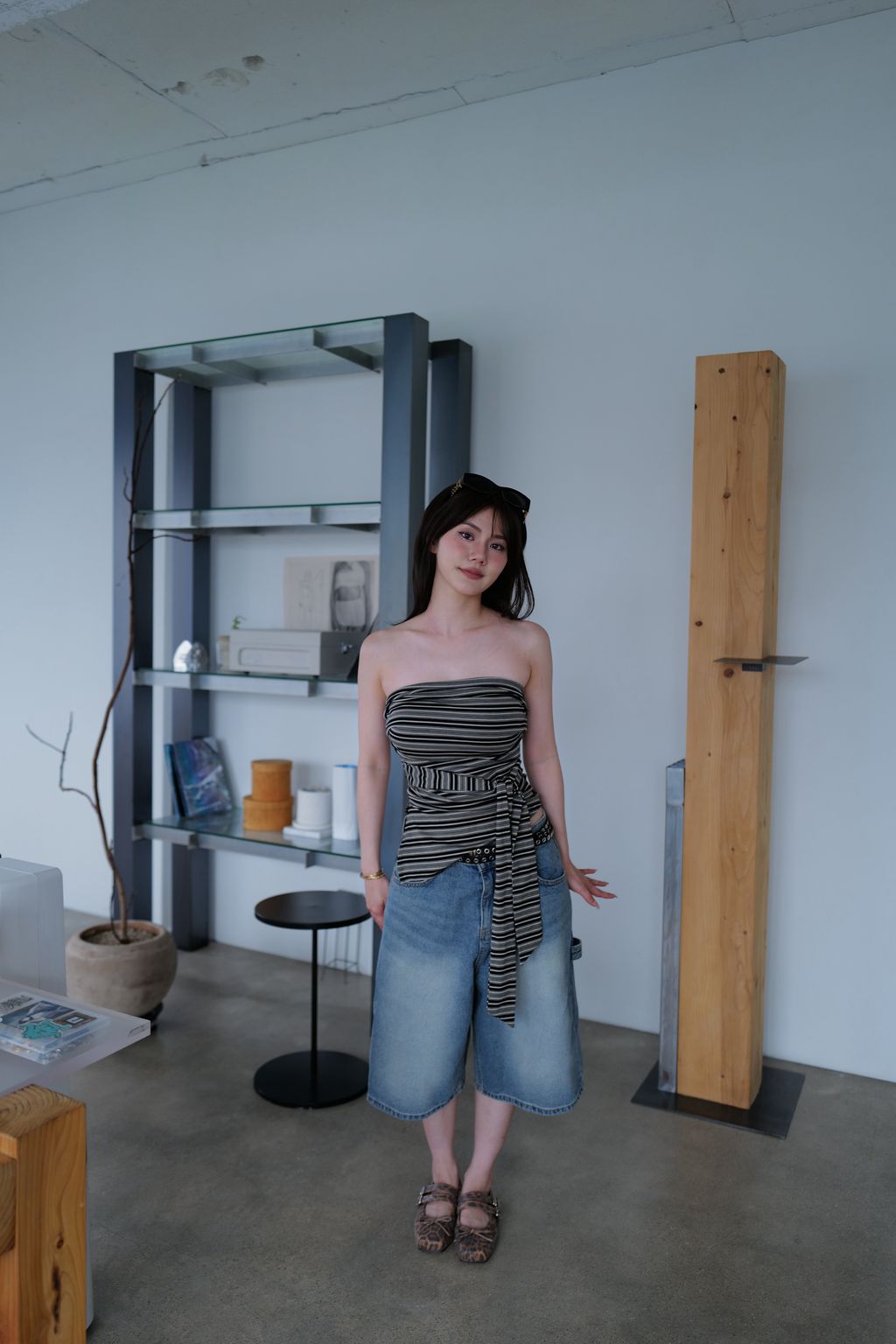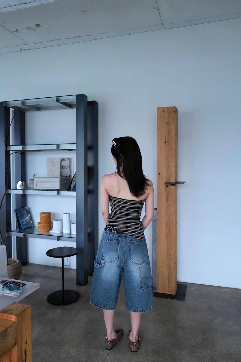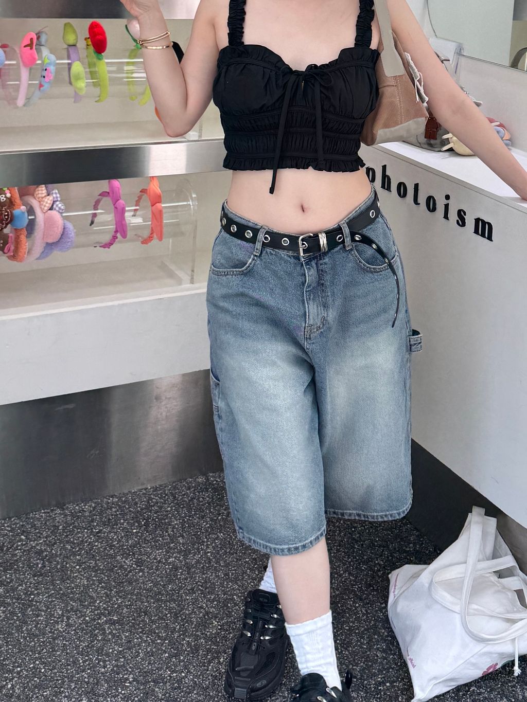 「韓國連線」N38 經典原色五分工作牛仔褲
