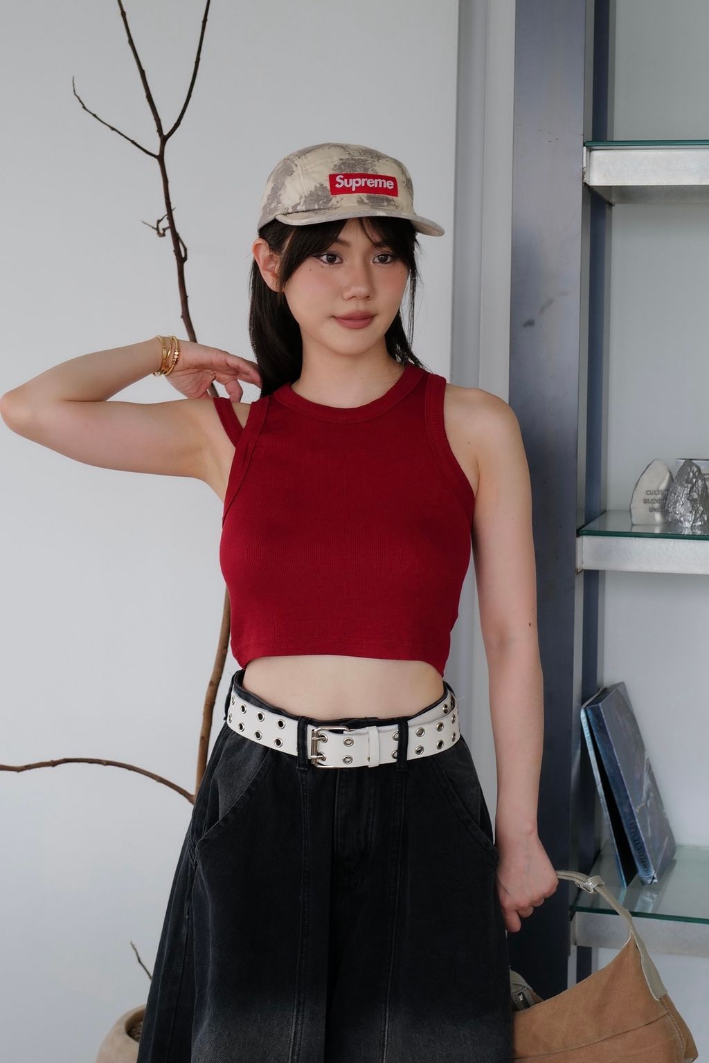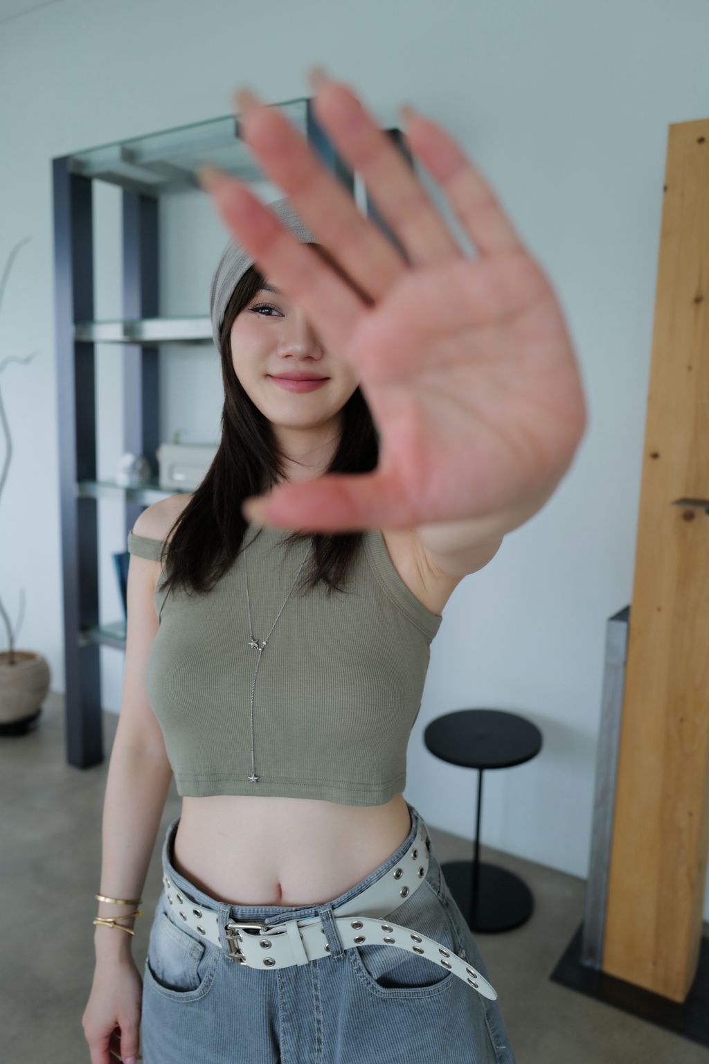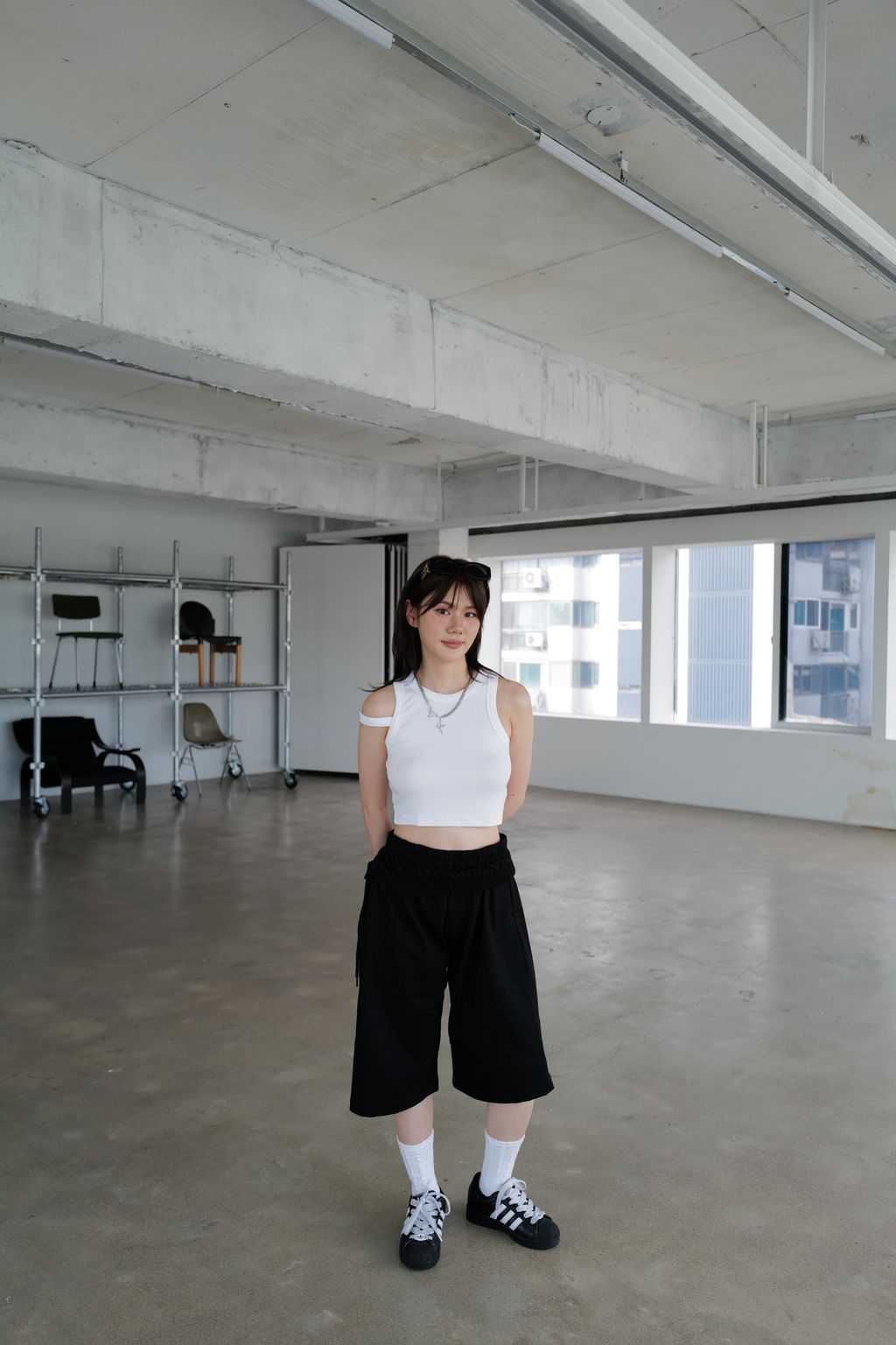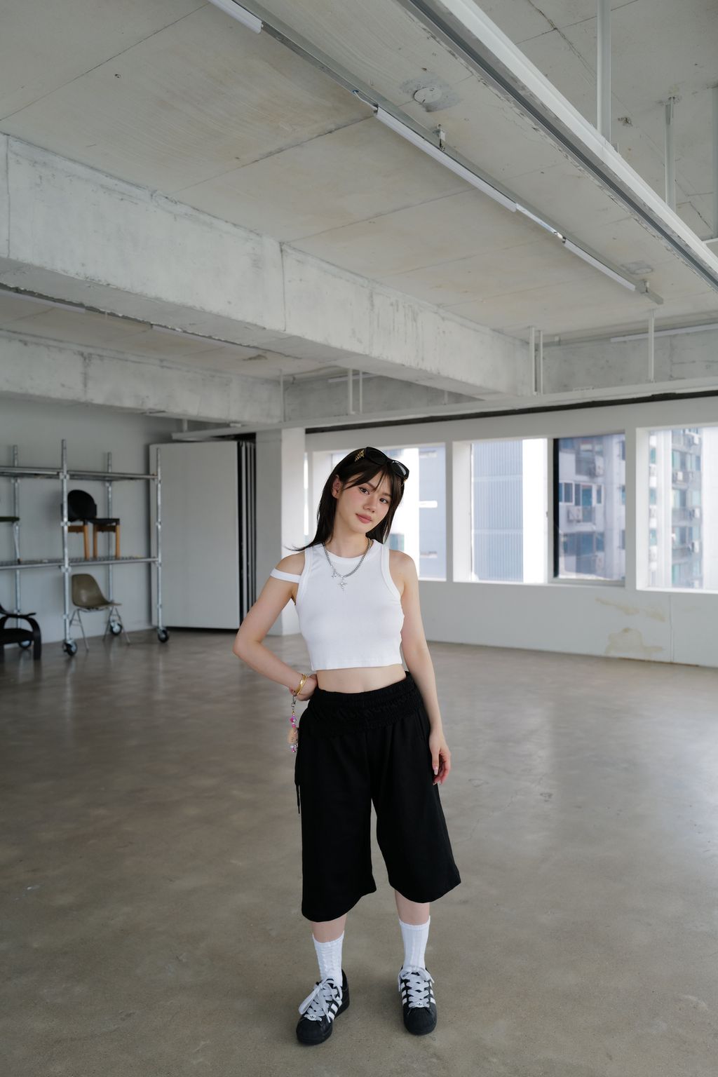 「韓國連線」N27 露肩帶設計短版羅紋背心